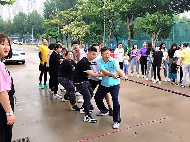哨聲響起,比賽一觸即發(fā)!大家團(tuán)結(jié)一致努力拼搏著!有的緊握麻繩,咬牙使勁;有的扎穩(wěn)腳步,不可撼動(dòng);有的身體向下傾斜,鉚勁拉繩……大家的勁往一處兒使,心往一處兒聚。全神貫注的眼神、奮力拉扯的身影,無不彰顯了員工們的意志。