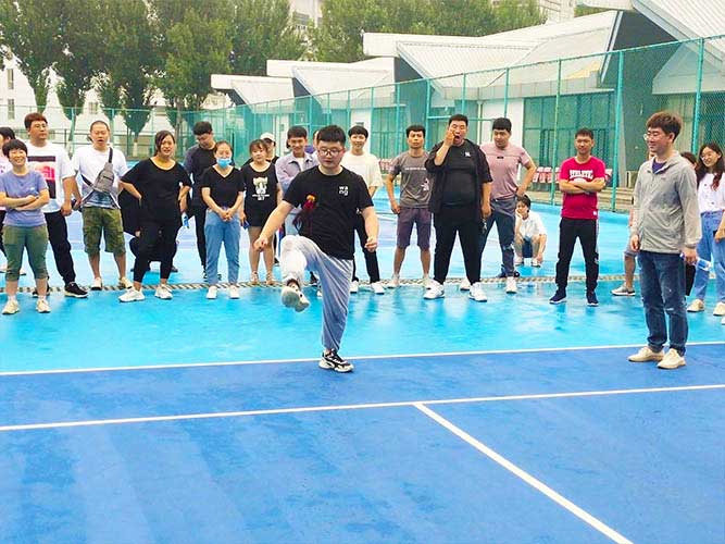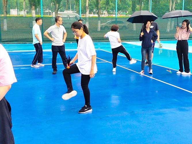 這是為女生們準(zhǔn)備的個(gè)人賽,同理,男生也可以挑戰(zhàn)。參加者每人一次機(jī)會(huì),踢毽子在不間斷、不落地的前提下,個(gè)數(shù)*多者勝利。并且冠*可以直接去選一個(gè)獎(jiǎng)品拿走。